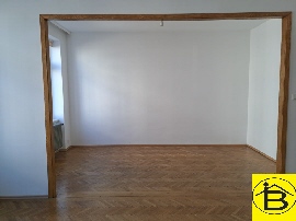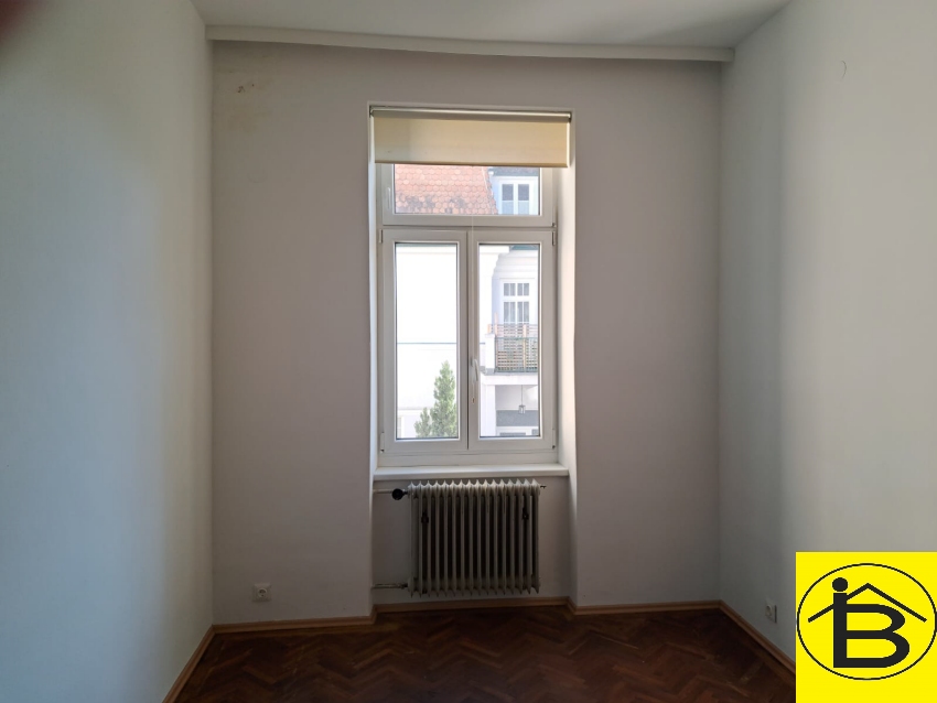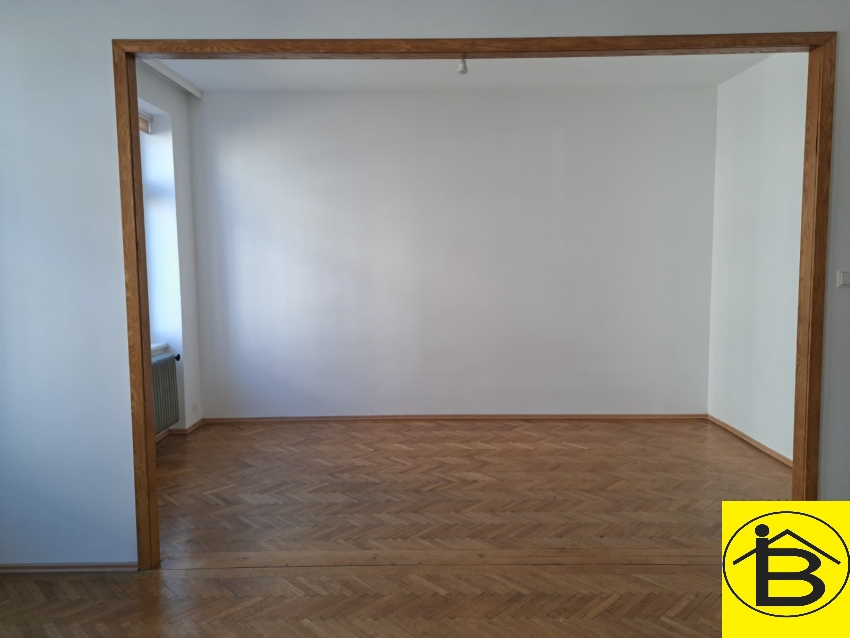 Aufgeteilt wird die Wohnung in Vorraum, Badezimmer, WC, Küche mit angrenzendem ehemaligen Dienstbotenzimmer, Wohnzimmer, derzeit mit dem Kinderzimmer zusammengelegt, wird auf Wunsch gerne wieder getrennt und ein Schlafzimmer.