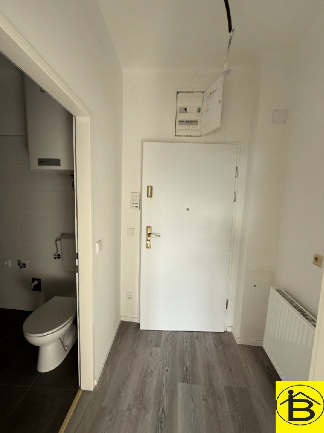 Die Wohnfläche unterteilt sich in einen Vorraum, Badezimmer mit Dusche, WC, Waschmaschinenanschluss sowie ein großes Wohn-Schlafzimmer mit Kochnische.