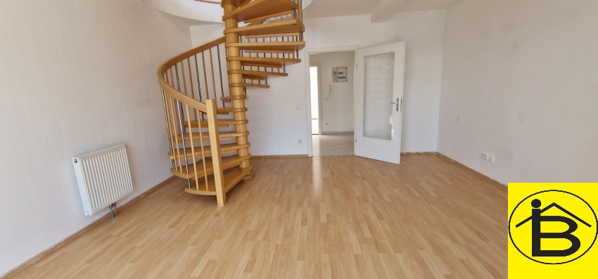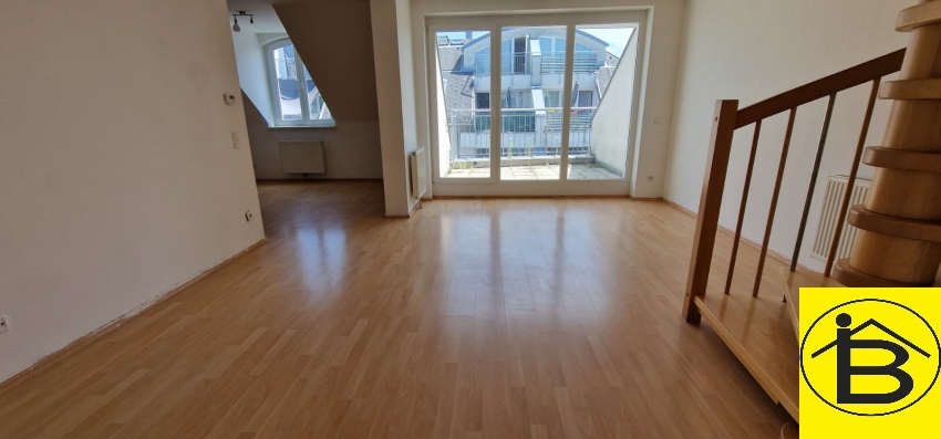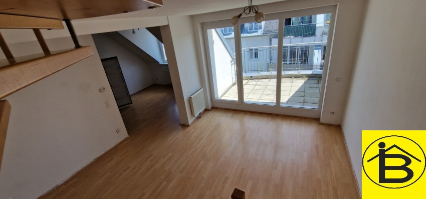 Die Maisonettenwohnung unterteilt sich in einen Vorraum, ein Badezimmer, WC, Wohnzimmer mit Ausgang auf die Terrasse, möblierte Küche sowie ein Schlafzimmer auf der ersten Ebene.